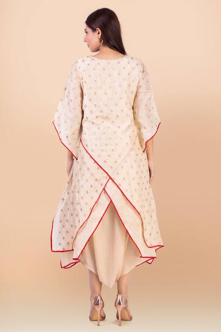 Buy_Jajobaa_Beige Assam Silk Woven V Neck Asymmetric Kurta And Dhoti Pant Set_Online_at_Aza_Fashions
