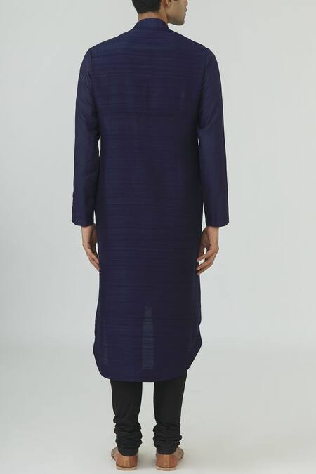 Ash indigo kurta with overlay panel detail. Comes with black churidar pants.