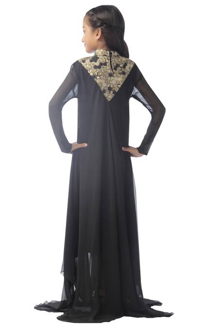 Buy_Kommal Sood_Black Georgette Embroidery, Piping Asymmetric Layered Dress_at_Aza_Fashions