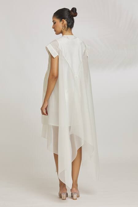 Buy_Amit Aggarwal_Ivory Organza Striper Embroidery Asymmetric Long Line Shirt Dress _Online_at_Aza_Fashions