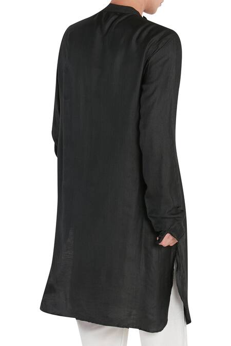 Black Cotton Plain Asymmetric Placket Kurta Set