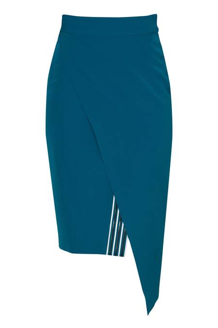 Buy_Amit Aggarwal_Blue Moss Crepe Asymmetric Skirt_Online_at_Aza_Fashions