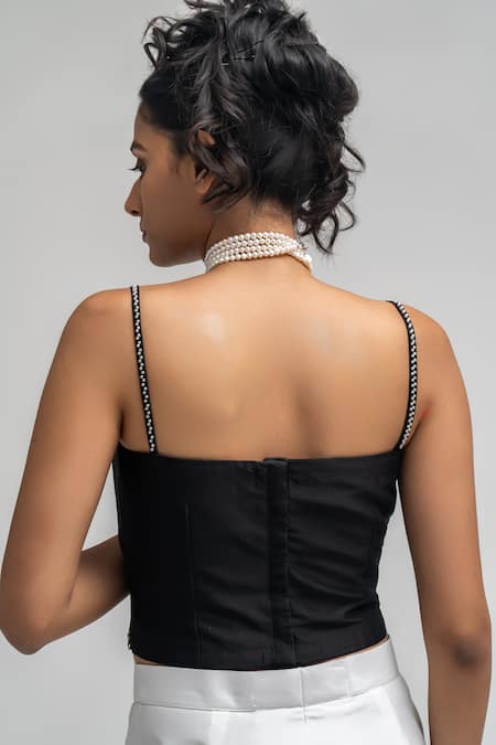 Black Chanderi Pearls, Beads Sweetheart Neck Embellished Bustier