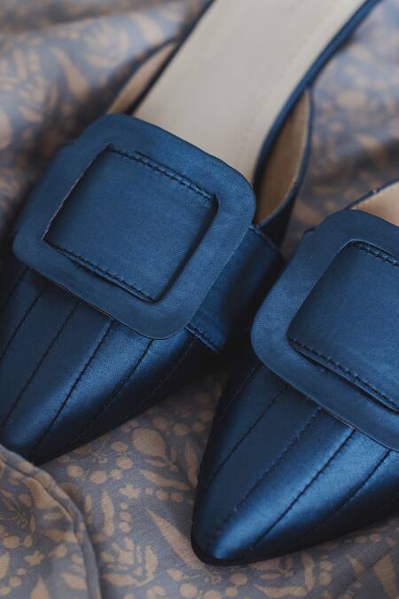 Buy_The Frou Frou Studio_Blue Plain Audrey Metallic Kitten Heel Mules_at_Aza_Fashions