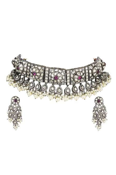 Geometric kundan polki motifs, Pearl drop embellishments