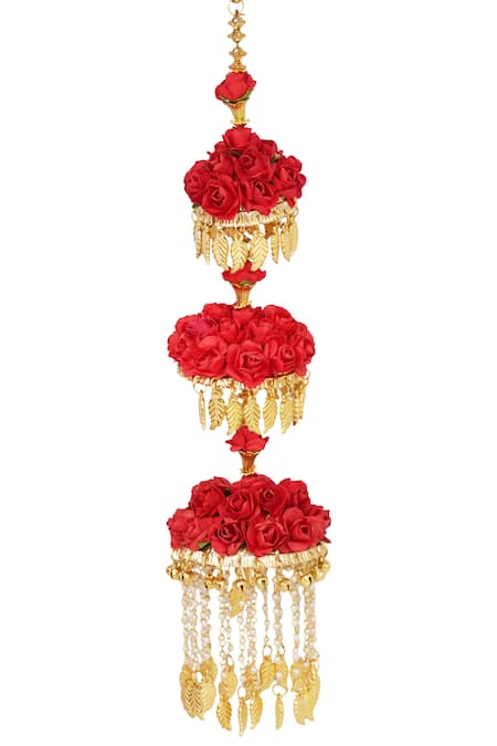 Intricate leaf carving and ghungroos, 3D floral work, Bead layering detail