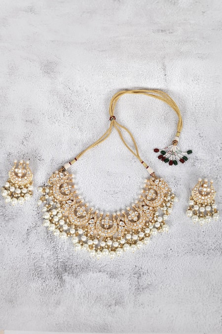 Gold Plated Pearls Kundan Crescent Moon Choker Set