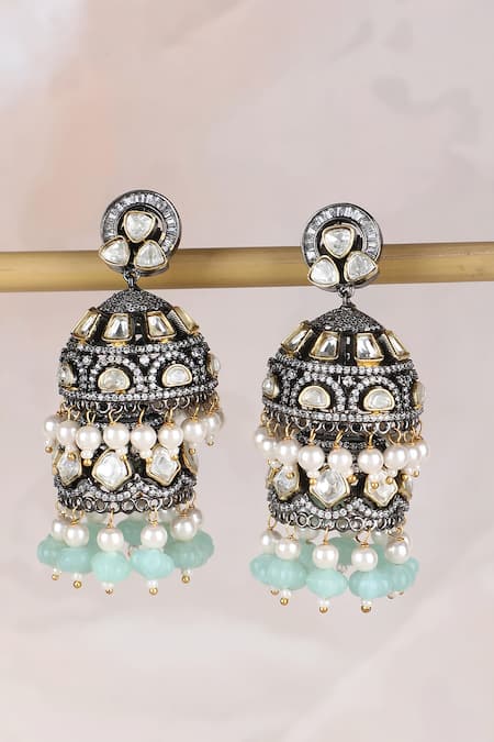 Buy_Auraa Trends_Grey Kundan Embellished Jhumkas _Online_at_Aza_Fashions