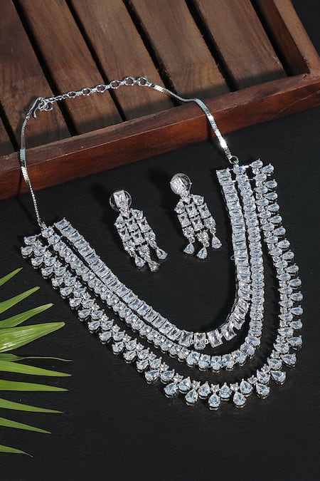 White Imitation Diamonds Layered Necklace Set With Stones