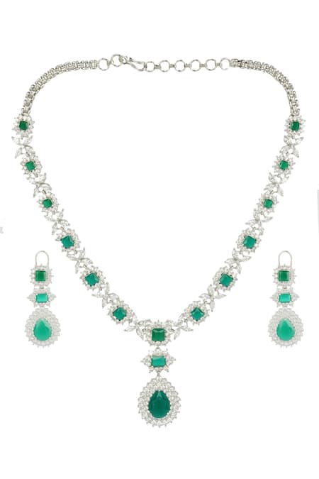 Buy_Auraa Trends_Silver Plated Diamonds, Stones Rhodium Finish Diamante Necklace Set _at_Aza_Fashions