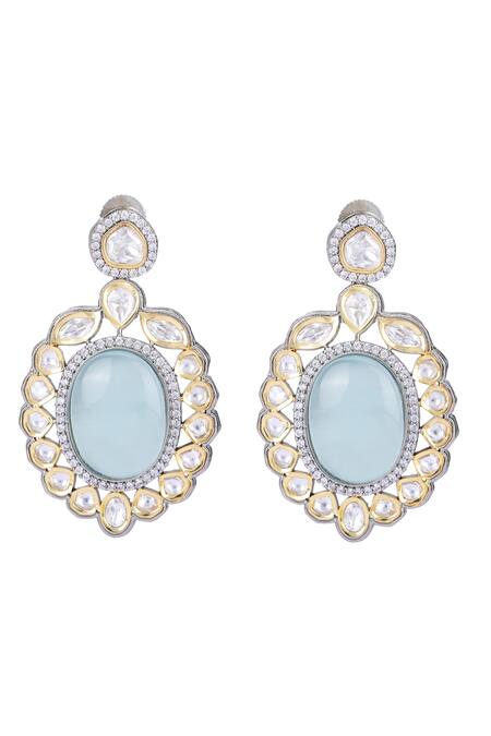 Blue stone pendant drop in necklace, American diamond zircon embellishments, Matching drop earrings design, Note: The jewellery sold is imitation jewellery.