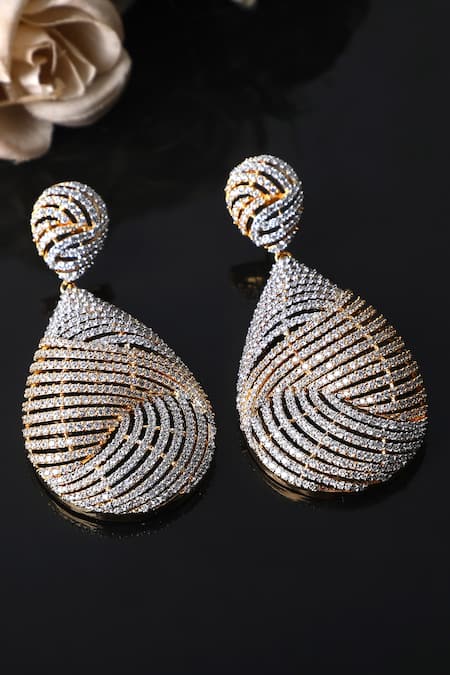 Buy_Auraa Trends_Gold Plated Zari, Diamonds Zircons Embellished Earrings _Online_at_Aza_Fashions