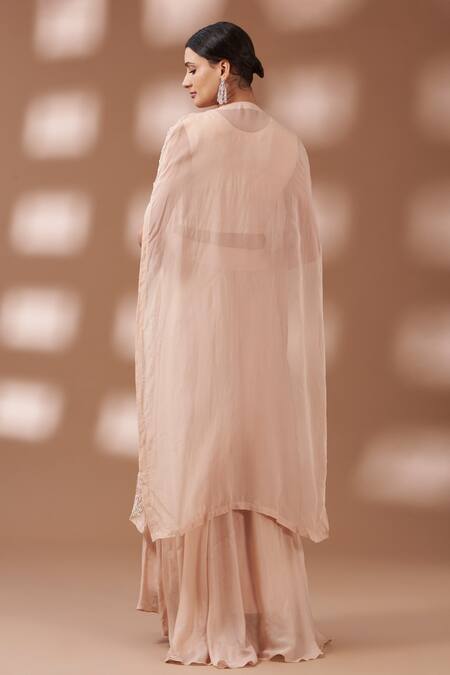 Beige Georgette Pearls Embellished Cape Skirt Set