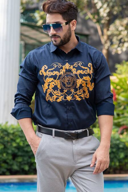 Blue Cotton Blend Hand Painted Alexander Shirt