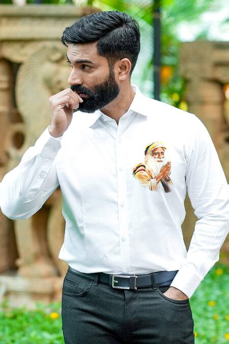 White Cotton Blend Hand Painted Sadhguru Shirt