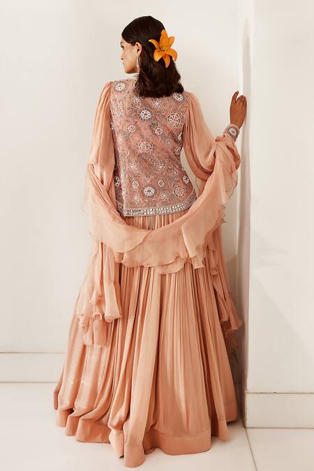 Peach Blouse - , Dupatta- And Aarna Embroidered Jacket & Lehenga Set