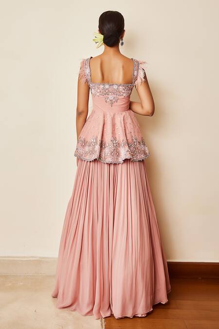 Purple Crepe Lining, Dupatta- Net, Peplum- Organza, Bahaar Pleated Lehenga Set