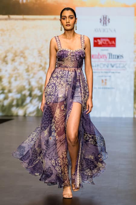 Buy_Awigna_Purple Organza, Satin Embroidery, Sequins Laurel Slit Gown With Shorts_at_Aza_Fashions