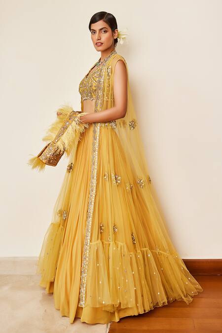 Yellow Blouse, Cape- Net With Crepe Lining, Zahara Embroidered Lehenga Set
