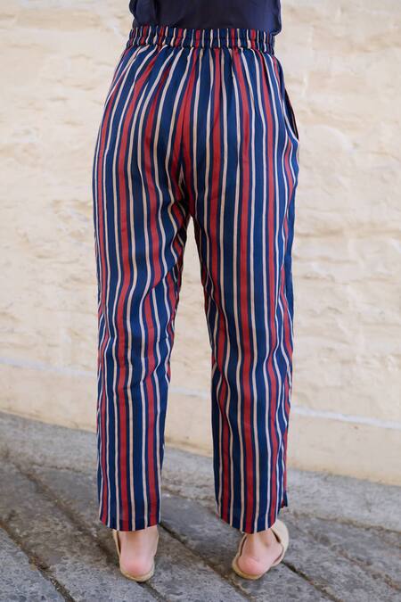 Blue Viscose Tabby Stripe Carly Pattern Pant