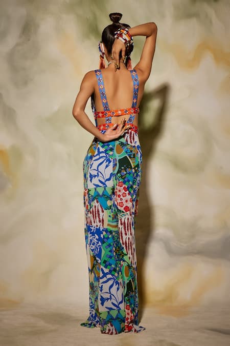 Diyarajvvir_Multi Color Georgette Aztec V Neck Print Jumpsuit _Online_at_Aza_Fashions