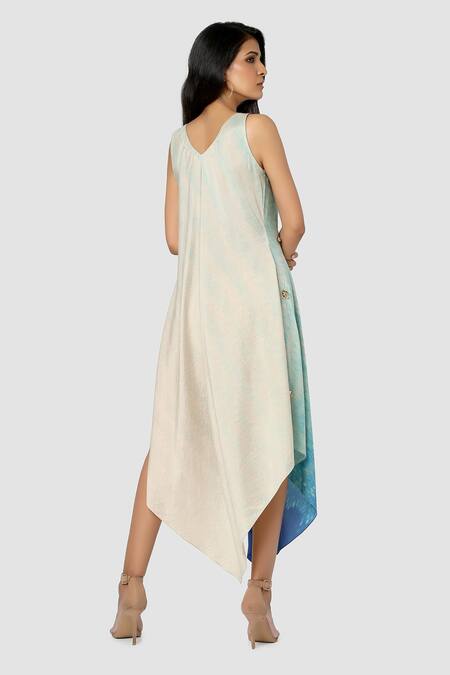 Blue Organic Cotton Silk Lining Lycra Tie Dye Asymmetric Dress