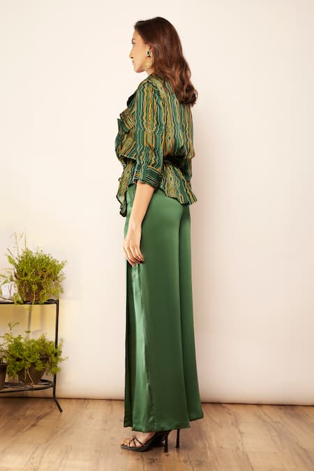 Green jacket featuring a wave stripe print with a collar and three-quarter sleeves