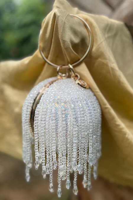 White Crystals Tasselled Small Ball Bag