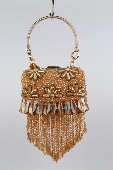 Bag Head_Gold Crystals Floral Bloom Embellished Bag_Online_at_Aza_Fashions