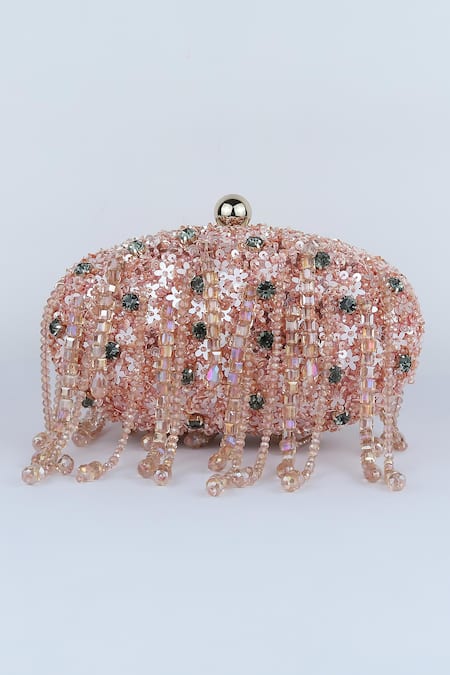 Buy_Bag Head_Pink Crystals, Sequins Floral Embellished Oval Bag _at_Aza_Fashions