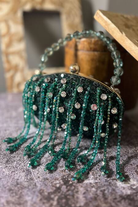 Green Crystals, Beads Jewel Embellished Oval Bag