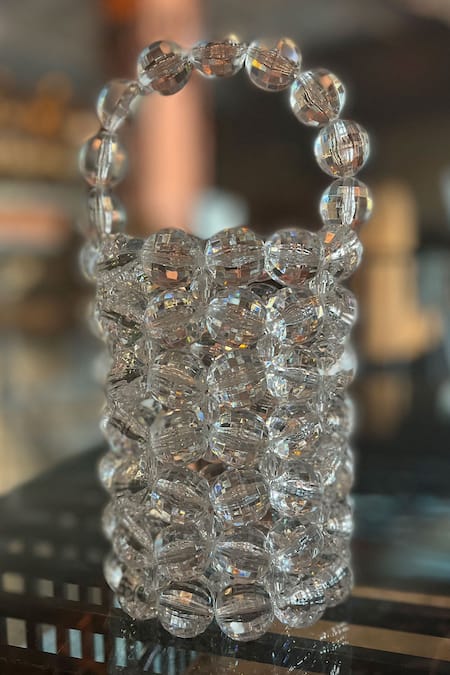 Beaded handle for easy carrying, Unique transparent design with crystals