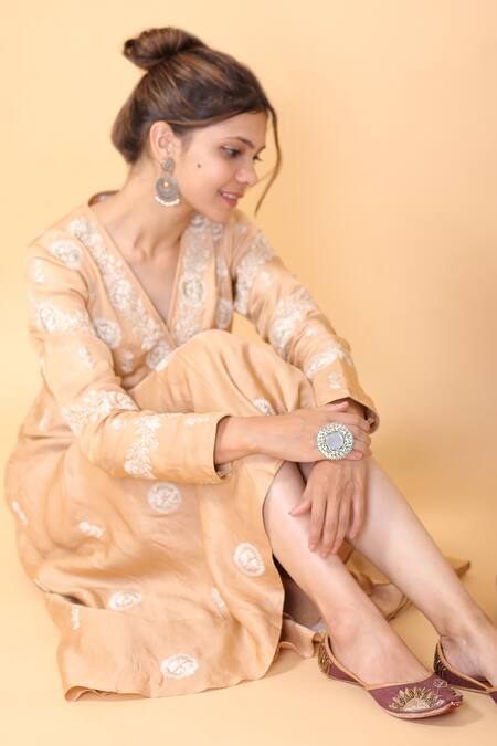 Buy_Kala_Brown Bahar Zardozi Embroidered Juttis_at_Aza_Fashions