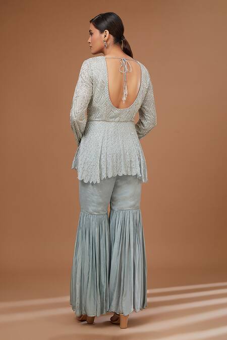 Blue Chiffon, Georgette Sequins, Cut Astral Scallop Dana Kurta Sharara Set