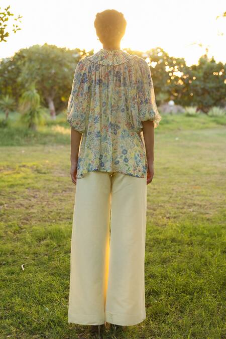 Buy_Baise Gaba_Yellow Cotton Linen Plain Daizi Pant_at_Aza_Fashions