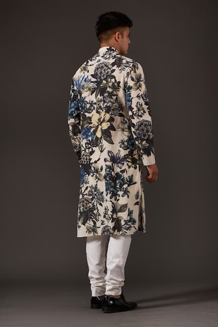 Ivory kurta with floral printed motifs & front buttons. Paired with churidar.