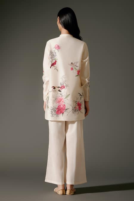 Ivory Chanderi Silk Embroidery Florence Garden Print Tunic With Palazzo Pant