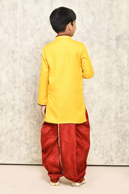 Buy_Petite Pomme_Yellow Cotton, Silk Kurta And Dhoti Pant Set _at_Aza_Fashions