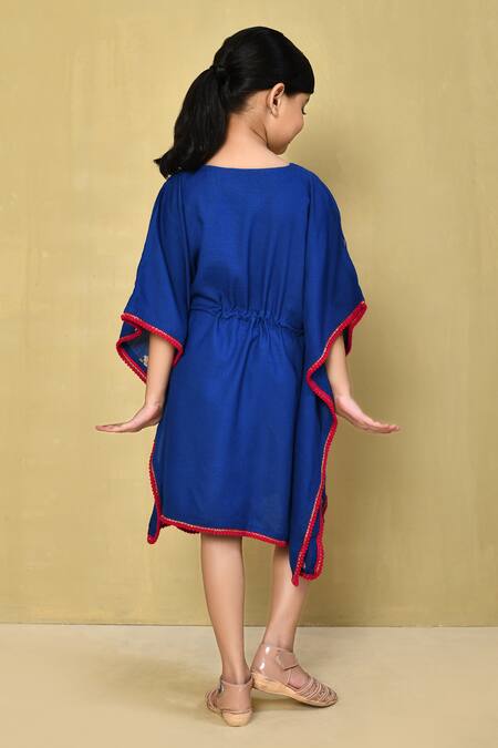 Buy_Samyukta Singhania_Blue Rayon Tassels Floral Thread Embroidered Kaftan Dress_at_Aza_Fashions
