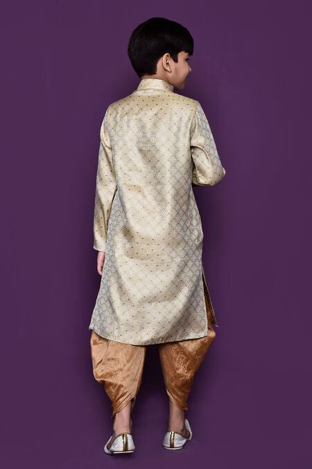 Buy_Petite Pomme_Gold Brocade, Silk Geometric Woven Pattern Kurta And Patiala Pant Set_at_Aza_Fashions