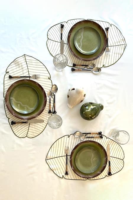 White Fabric Embroidered Banana Leaf Table Mats Set Of 6