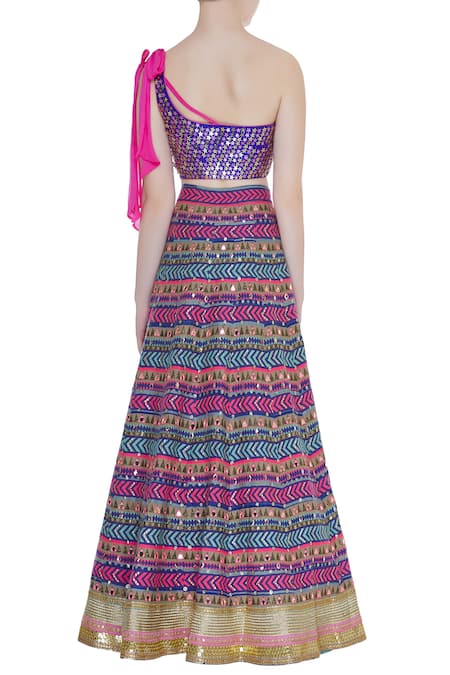 Buy_Avnni Kapur_Multi Color Banarasi Embroidery Mirror Work One Shoulder Lehenga Set_at_Aza_Fashions