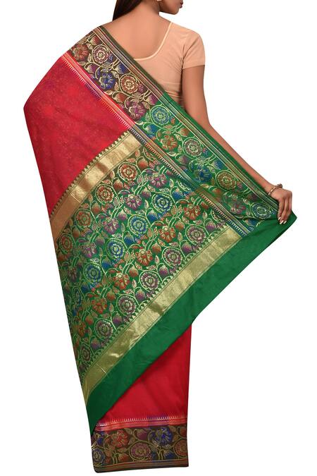Buy_Samyukta Singhania_Red Banarasi Silk Saree_Online_at_Aza_Fashions