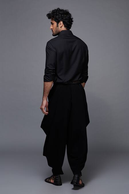 Buy_S&N By Shantnu Nikhil_Black Lycra, Viscose, Terylene, Velvet And Faux Leather Band Collar Shirt_Online_at_Aza_Fashions