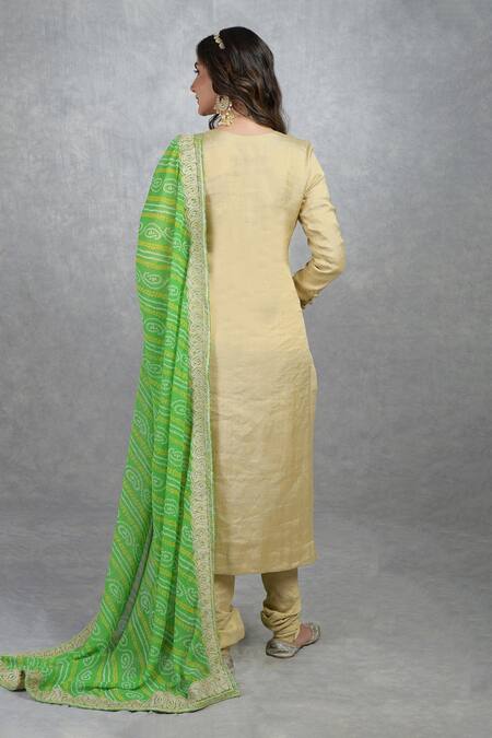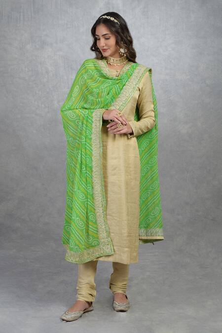 Buy_Talking Threads_Green Georgette Bandhani And Kashmiri Tilla Work Dupatta_at_Aza_Fashions