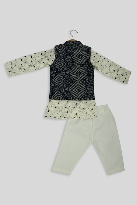 Buy_Champscloset_Cream Cotton Printed Bandhani Kurta Set With Bundi_at_Aza_Fashions