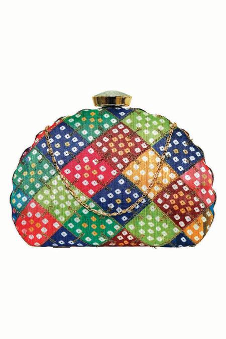 Buy_NR By Nidhi Rathi_Multi Color Digital Print Bandhani Clutch Bag_at_Aza_Fashions