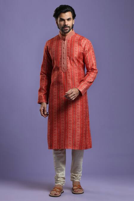 Buy_Kora By Nilesh Mitesh_Red Blend, Chanderi Bandhani Print Kurta Set_at_Aza_Fashions