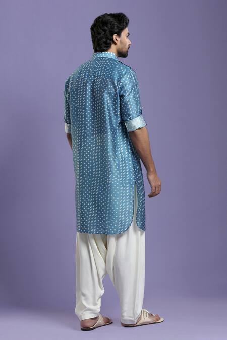 Buy_Kora By Nilesh Mitesh_Blue Silk Blend Bandhani Print Pathani Set_Online_at_Aza_Fashions