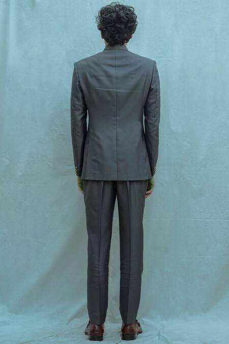 Grey short bandhgala with front welt pocket & come with shirt and pant.